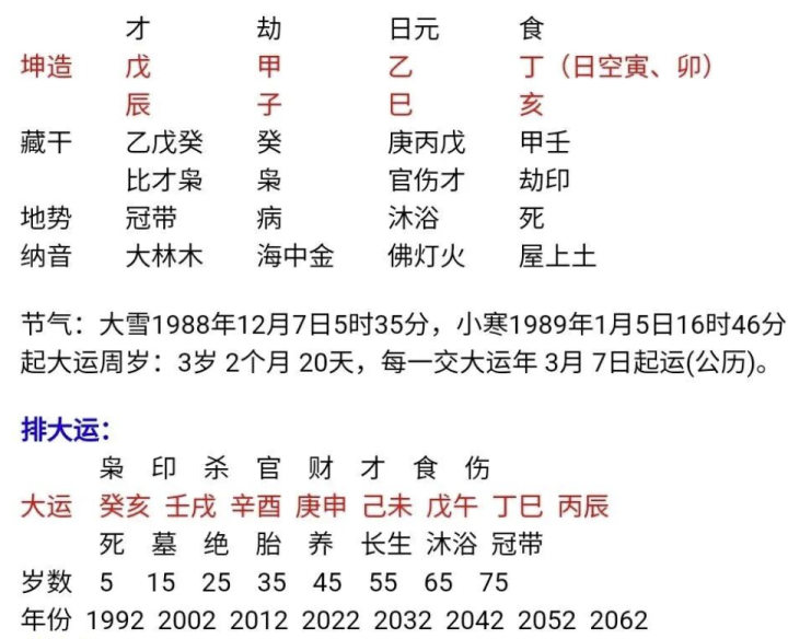 13-23岁走壬戌大运,和年柱戊辰天克地冲,这十年变动很大,学业失败,也为辍学。