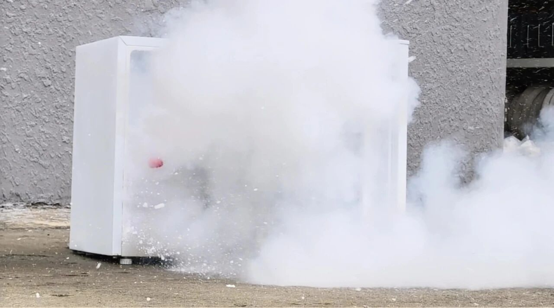 随后,消防员再次用雪柜作念测试,将装有干冰和水的矿泉水瓶放入雪柜一段工夫后,雪柜门也被开阔的冲击力顶开。