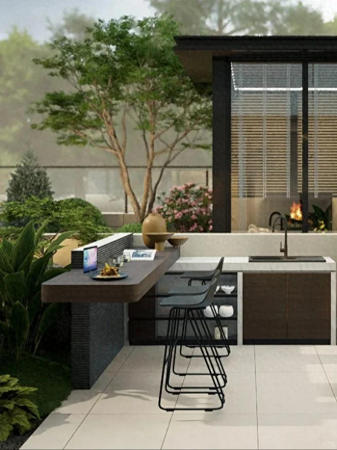 有了这个吧台,院子就不再仅仅晾衣着的方位。