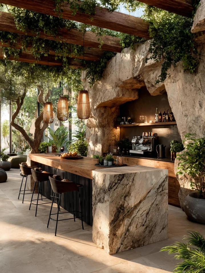 站着能靠着,坐着得配高脚椅。这种高度,自然就带着一种“不追究”的慵懒。