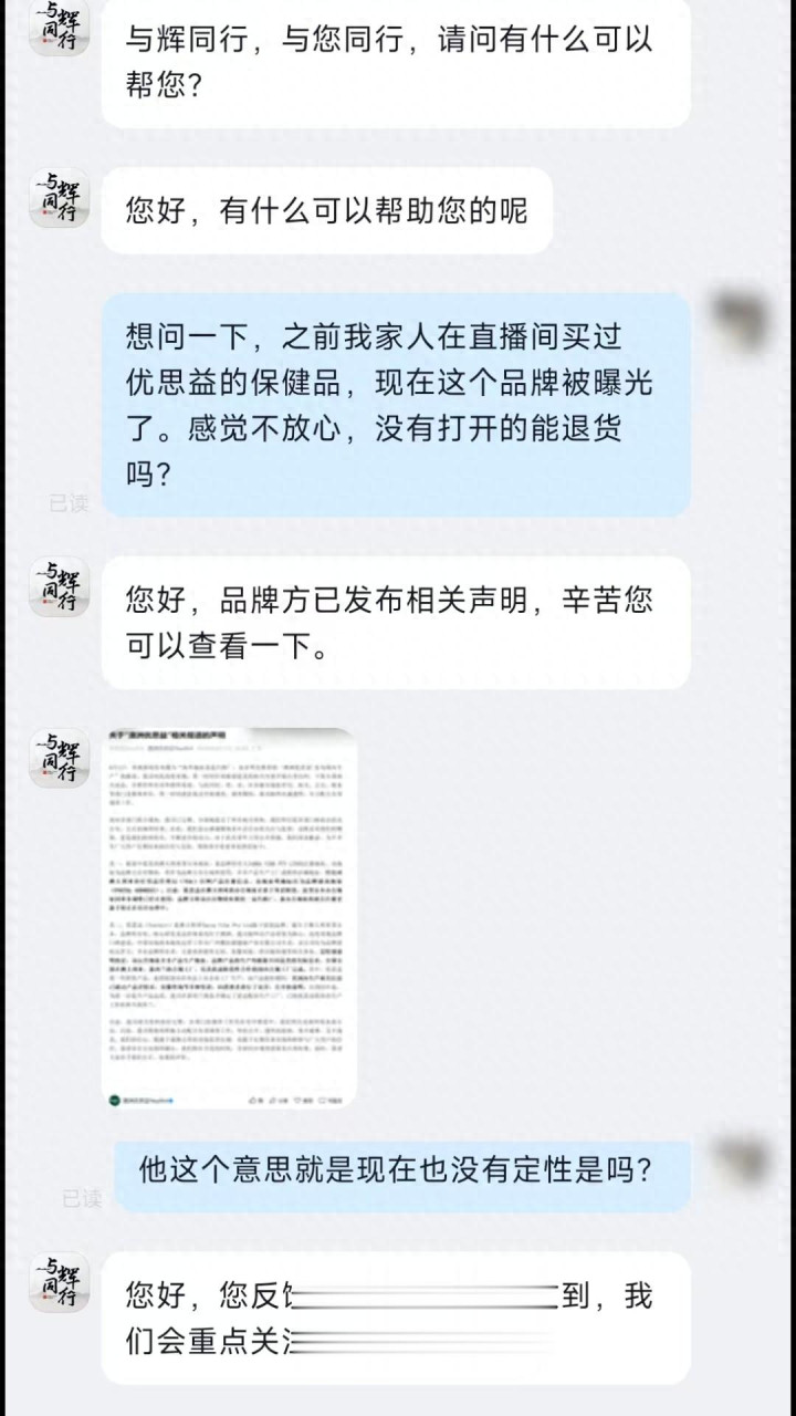 央视曝光优念念益保健品臆造国际产地、涉嫌疯狂宣传后,一些主播给出了明确的退款有谋略,有网友宣称不少东说念主在与辉同业直播间购买了有关产物,那么这部分耗尽者又该何如办呢?