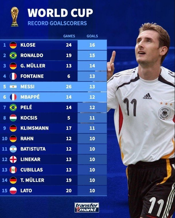 IM盘口 你的位置:IM体育官方网站首页 > IM盘口 > IM体育官方网站 寰宇杯弓手榜克洛泽大罗领跑,梅西姆巴佩进前六