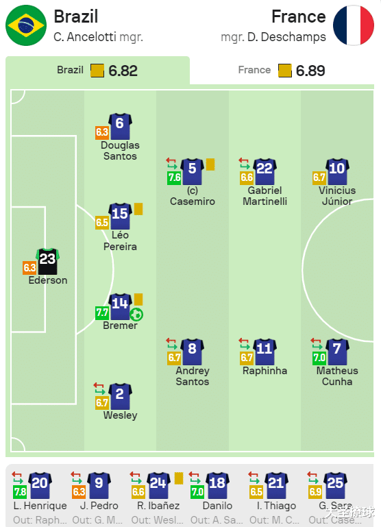 反不雅谈格拉斯·桑托斯,他仅赢得6.3分,成为全场评分最低的球员。当作别称可靠的边后卫,他的弘扬也反应出一个巨额问题:相较于巴西队过往的黄金一代,现时球队在边后卫位置上缺少顶级球员储备。