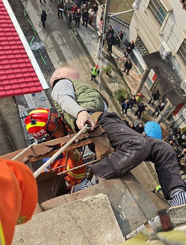 老东说念主成功获救。图源:湖北消防