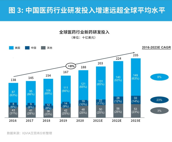 据了解,这并非我国初度通过技巧突破,错乱泰西在生物健康领域的把持。艾昆纬数据显露,连年来我国在联系行业研弘扬到了23%,远超人人平均水平。