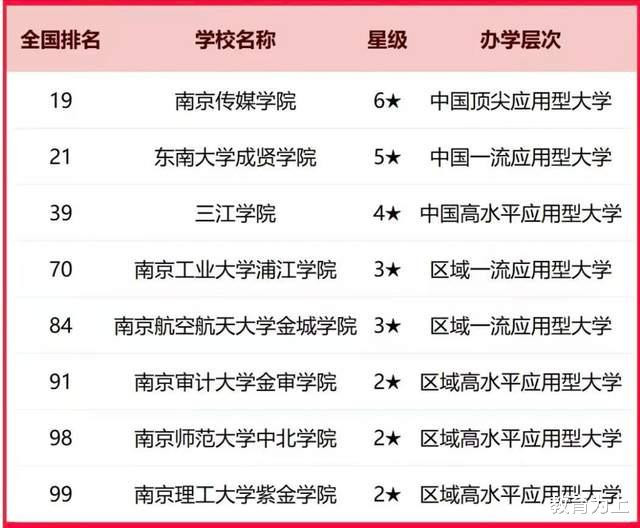 此外,在南京市民办高校中,南京传媒学院、东南大学成贤学院居榜单前2名,是南京市抽象实力较好的民办大学,分别居寰宇民办高校第19名、第21名。