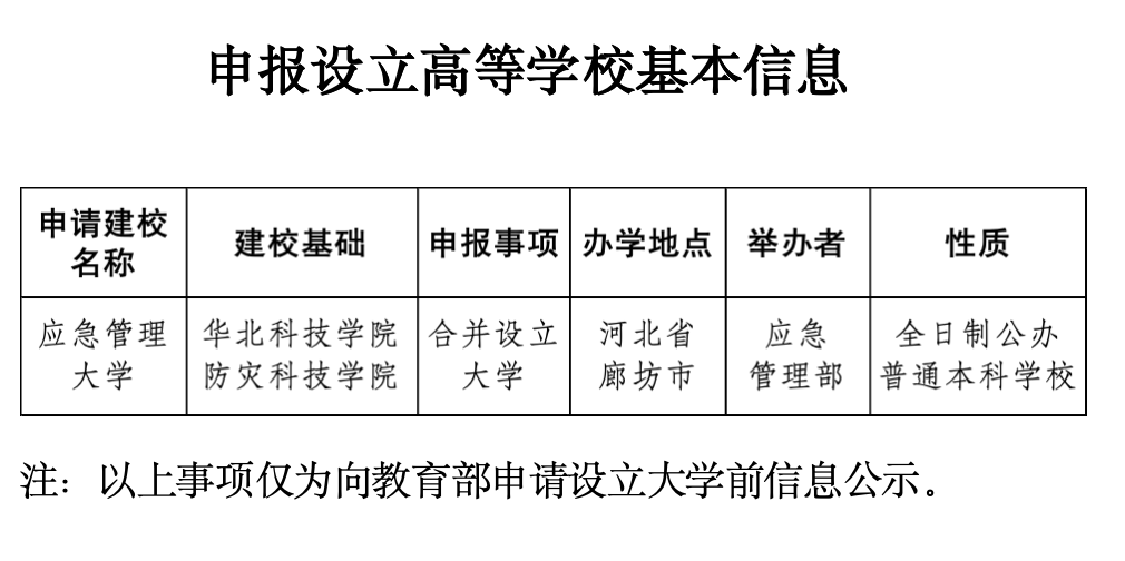 本年1月4日,教学部发布《对于拟快乐建树本科高等学校的公示》,其中,拟快乐华北科技学院、防灾科技学院改名为济急照应大学。