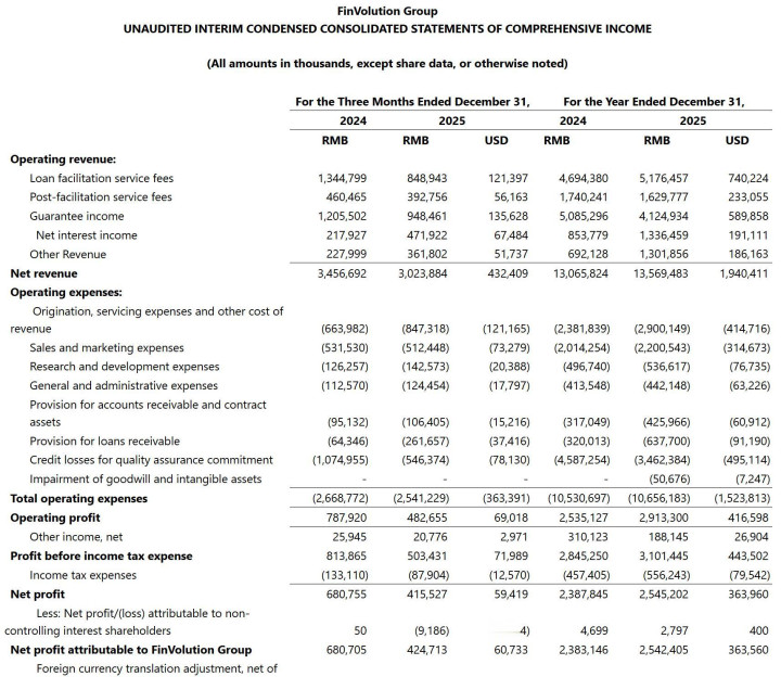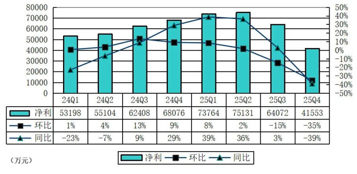 信也科技2025年第四季度净利润为4.155亿元(5940万好意思元),较2024年同期的6.808亿元下跌39%。